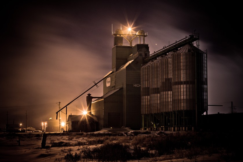 This evening I was working with a prime lens, a Canon 50mm f1.4 lens. I’m getting a sense for the distance to subject it accommodates. With my 60D’s sensor having a correction factor of 1.6, the 50mm lens behaves more like an 80mm lens; so, this evening I’ve been putting distance between me and my subjects. In this shot, I’ve created some blur (light trail) with a 10 second exposure and the tail lights of a vehicle moving through the photo from left to right. Working with live view is helping focus manually to different parts of the landscape; this is f-10 for five seconds … I’ve probably focused on the second lamp post to the right.