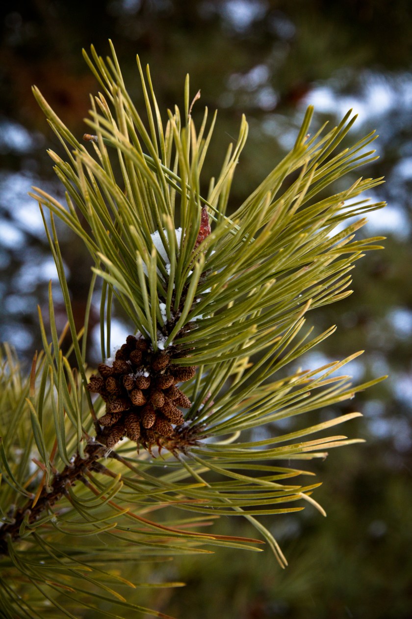 Again, today – out and about on a photowalk … others’ fresh perspective has me looking up and looking at things. Green needles of a conifer remind and point towards spring … loving the colour and background, here.