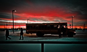 Sunrise School Bus Silhouette