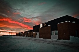 School Against Sunrise Backdrop