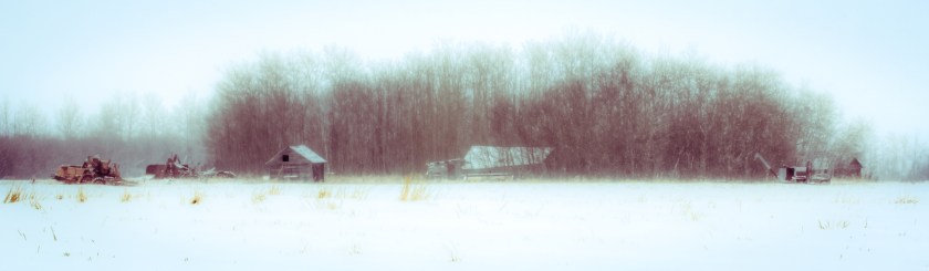 Stories take me back to this era of time when farms such as this one captured in this image were starting points for Canadian families.  One set of Canadian stories about farm-life were W.O. Mitchell’s Jake and the Kid Stories.  The other story that opened out the time toward moving into the fifties was John Grisham’s A Painted House. The farm I know best, though, is that farm my cousin grew up on; and, then I come back to this image and the questions I have about leaving it in this state – it must be memorial, something that draws memory back to what was and who they were that made things happen, feeding the world.
