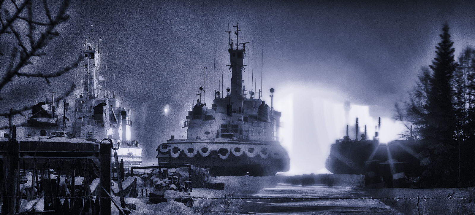 In January’s winter, huge, huge boats – complex structures, rigged out with all kinds of equipment to make them self-reliant and useful upon the water – have been dragged to ground from the world’s largest lake – the Great Slave Lake; the boats wait, unused, boarded-up and dormant within acres and acres of Hay River’s boat yard. Canada’s Great Slave Lake is large enough to make transport of materials more efficient, faster and more direct when these boats are used than when moving materials around the perimeter of the lake by transport truck. These boats have names – Jock McNiven, Lister, Horn River, and Radium Empress – and in being named do stir curiosity about the origin of such reminiscence in each boat’s appellation. Snowy and overcast, the day yields -26C at 5:00 p.m. on a January winter day in Canada’s Hay River, Northwest Territories; overnight it will get colder. It’s the kind of day when a Hay River resident keeps an eye out for the potential of a stranded motorist, a neighbor, needing a tow from the snow bank or a boost of their car/truck’s battery. People living in Hay River know how to live in Hay River.