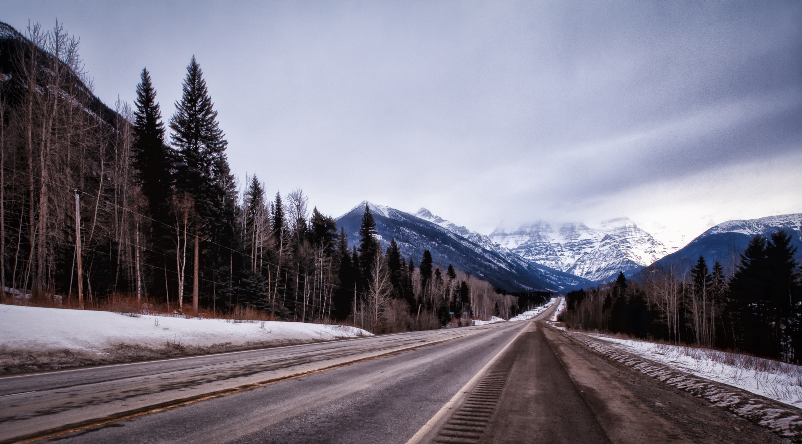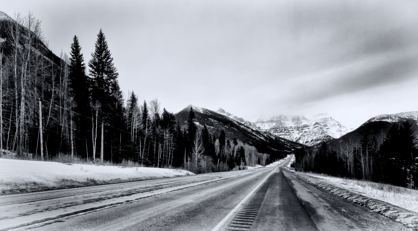 From Edmonton, it was a flight to Penticton via Vancouver the next day to work on assets associated with my father-in-law’s estate. With a day’s work done, there, I began the drive back to Edmonton only to find that the highway I had chosen had to be closed because of accidents occurring in the slush and snow. Doubling back, I was able to drive through Kamloops on the Yellowhead Trail and aim for Edmonton via Jasper. I stopped for the night at Kamloops and then began my drive on the Yellowhead, a bright day with dry roads. I got a meal along the way and within a couple of hours was the unwitting victim of food poisoning. With no energy and chills I decided to hunker down in Valemount, British Columbia – at 2:00 p.m.. I got a hotel room and slept my way around the clock. After many hours of sleep, weakened, but ready to aim for home, I got back in the vehicle. The mountain images presented here are those preceding food poisoning and those from the day driving from Valemount to Edmonton.