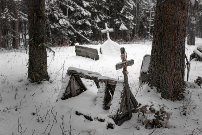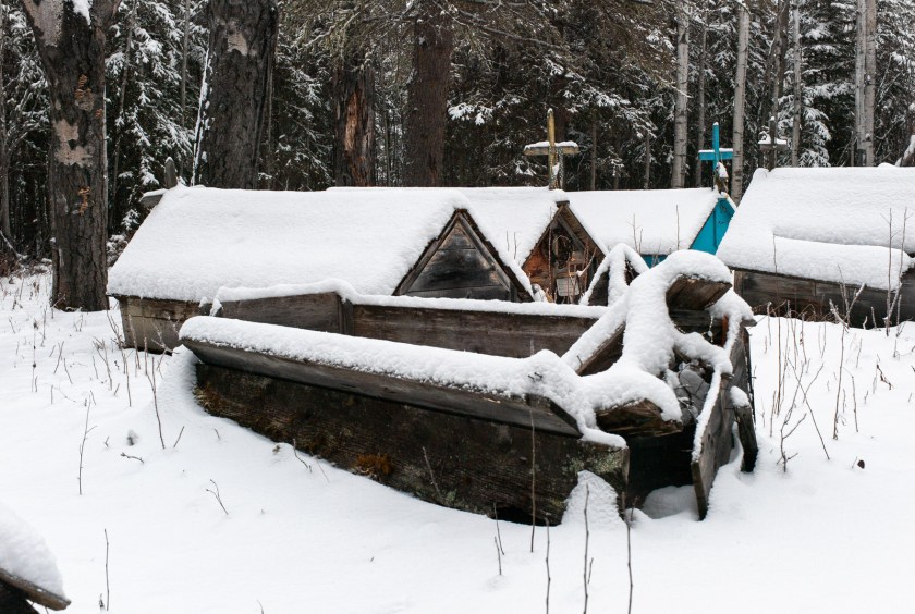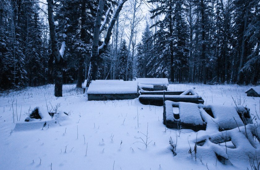 Out and away from High Level on a Sunday afternoon, north towards the Northwest Territories border stopping for these images of Dené burial houses at a site called Indian Cabins. My drive would later take me to Alexandra Falls along the Hay River within the Twin Falls Gorge Territorial Park.