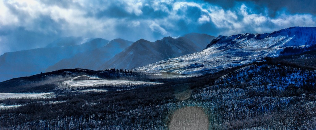 Land, cloud, light and colour – in juxtaposition they caress and collide yielding immensity in southern Alberta prairie and among foothills and mountains.