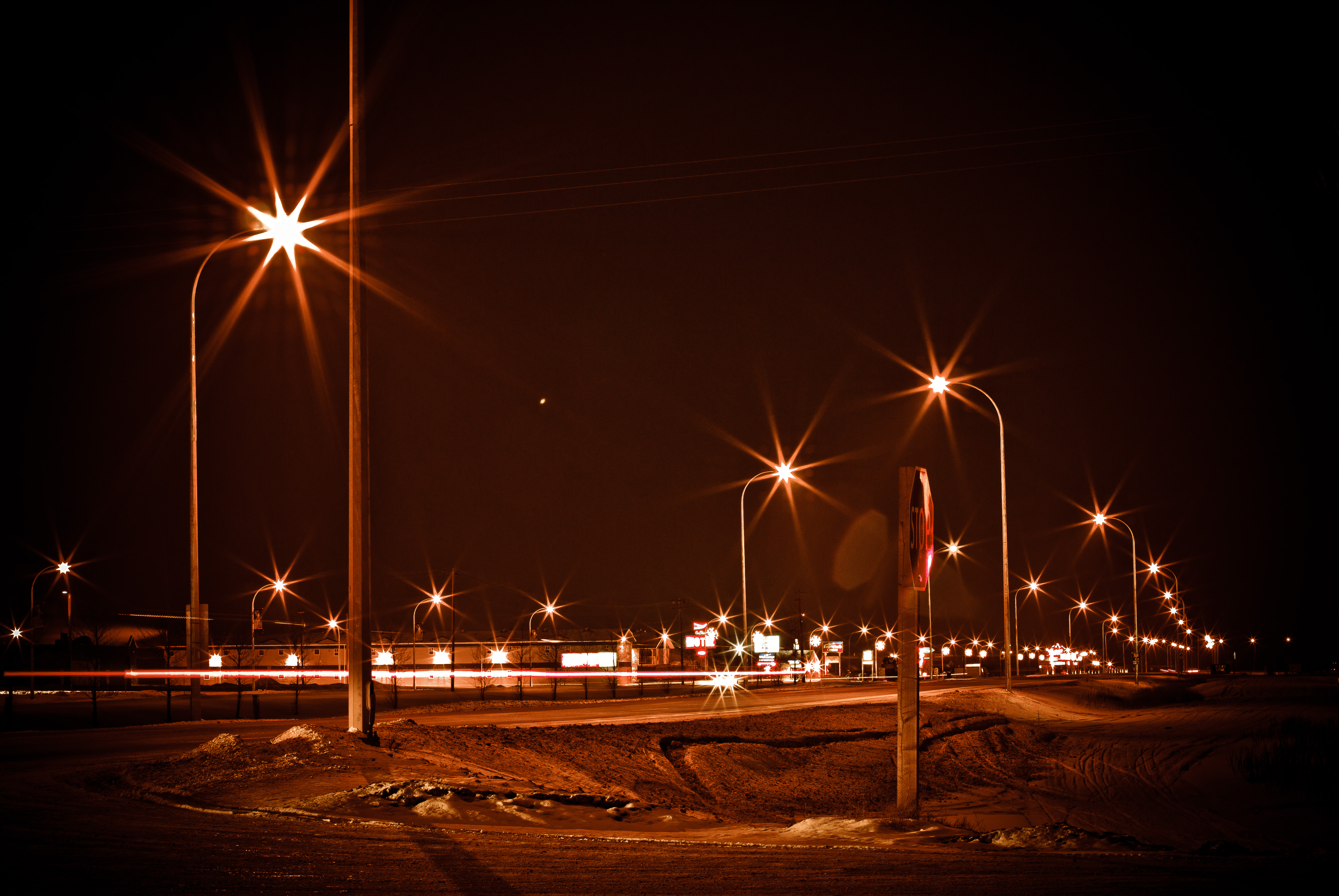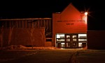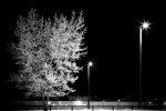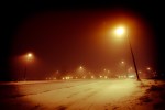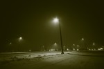 On Thursday evening, the temperature in High Level, Alberta dropped from -10C to -20C+. The moisture in the air transitioned to noticeable fog and then crystallized on physical objects producing a beautiful array of hoarfrost on trees, buildings and fences throughout the town. I went for my evening walk, walking a counter clockwise, reverse 6 km circuit through High Level, returning home to collect my Canon 60D and Manfrotto Tripod. The variation in subjects is limited – bus lane light standards between High Level Public School and Florence MacDougall Community School (showing the play of light against fog), a hoarfrosted tree in parking lot to the west, three entrance images to High Level Public School and the school’s playground equipment. In all images, a change in the weather has altered the landscape, creating new possibilities for photographs.