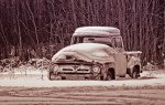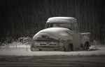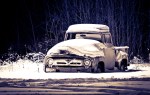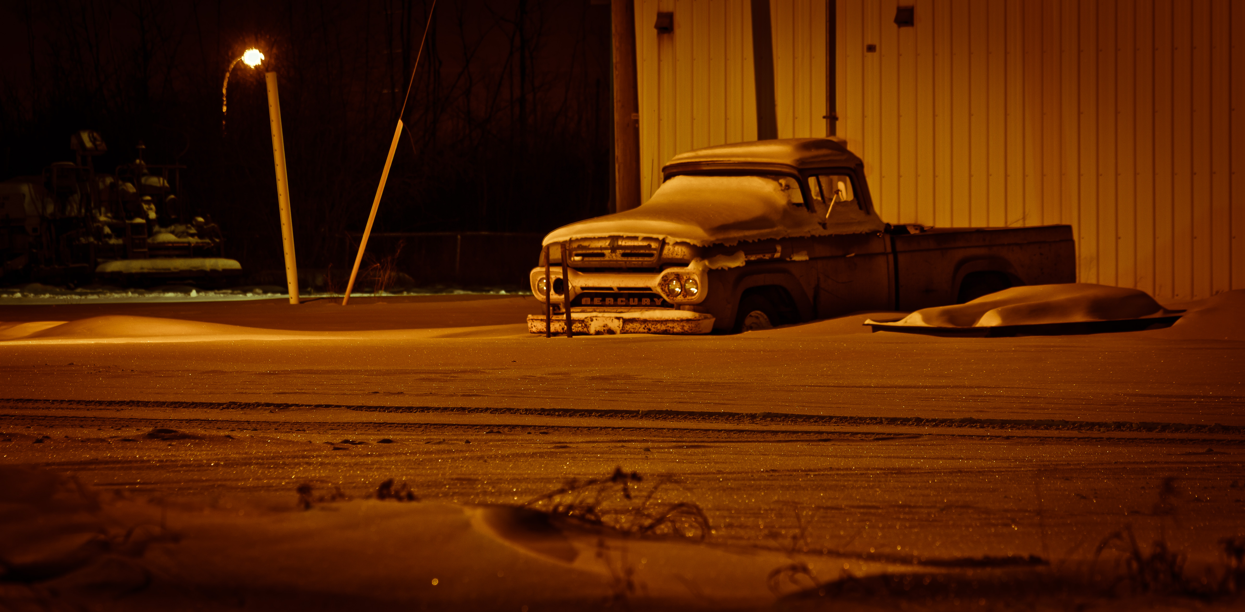 I’ve been out for a 6K walk around town tonight. It is -35C and I’ve listened to a lecture given by John O’Donohue on Imagination. After the walk, I recalled this vehicle in the High Level industrial park, a vehicle that I’ve known about but never photographed, a 1960 Mercury M 100 long box pickup truck. It’s been on my mind for the better part of a year. I’ve never photographed it because the landscape or situation it is set in seems bleak and uninteresting. Perhaps such context draws out beauty from the vehicle’s lines and shape or perhaps through time one acclimates to beauty, form and style.