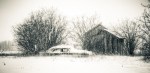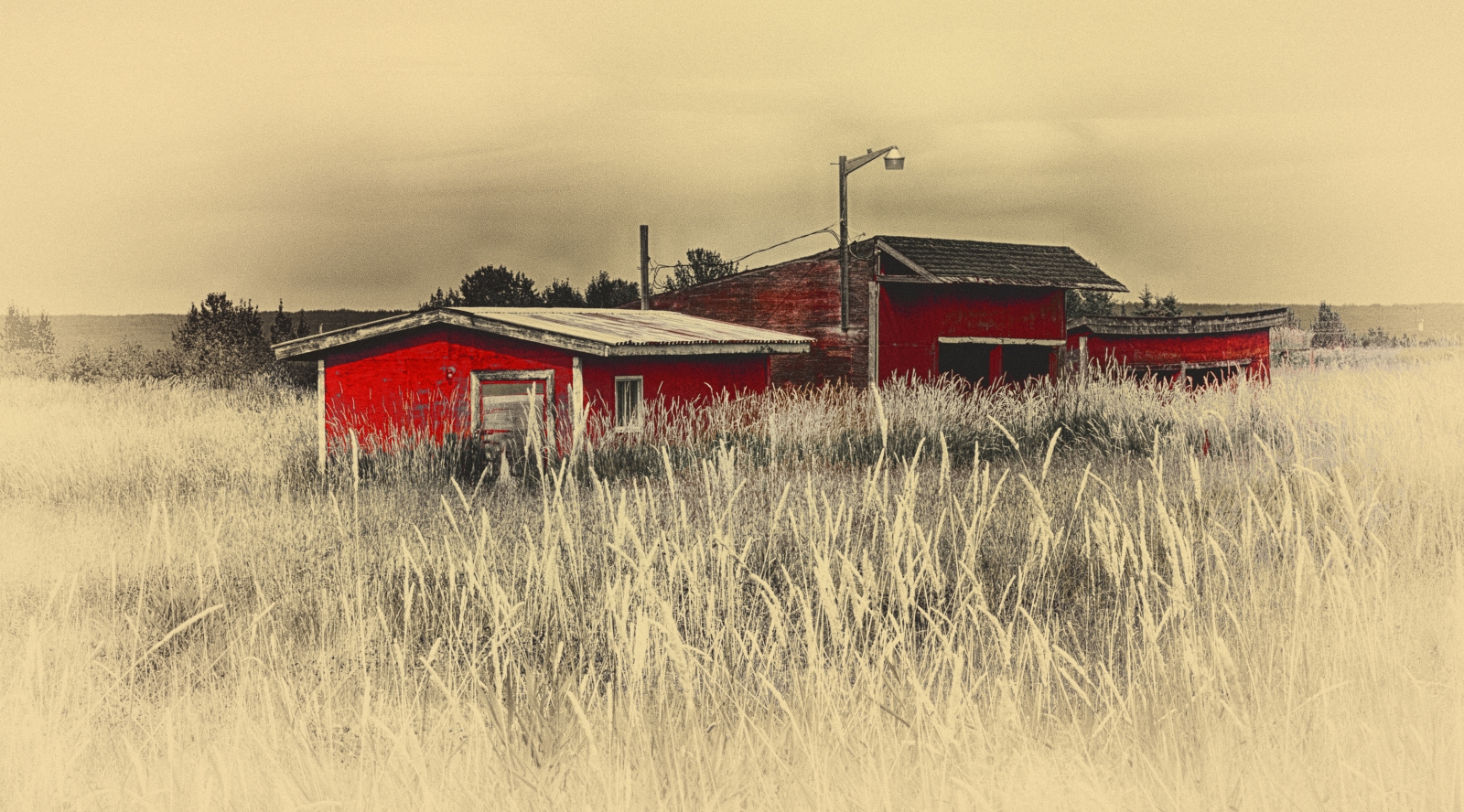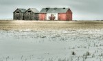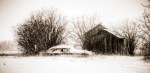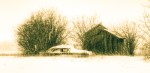 Wheat Kings and farmsteads served as points of departure. Stirling, Wrentham, Skiff, Foremost, Orion and Manyberries were place names in my travel – each had wooden grain elevators from the previous century used to stockpile grain for railway transportation. Some appeared to remain in use. Grey, weathering wood of still-standing derelict farm buildings clustered in disused prairie farmland with the rusting reds and browns of grain trucks – abandoned, yet holding memory to the past. General stores no longer in use faded in terms of colour and signage. I and my cameras went about image making.