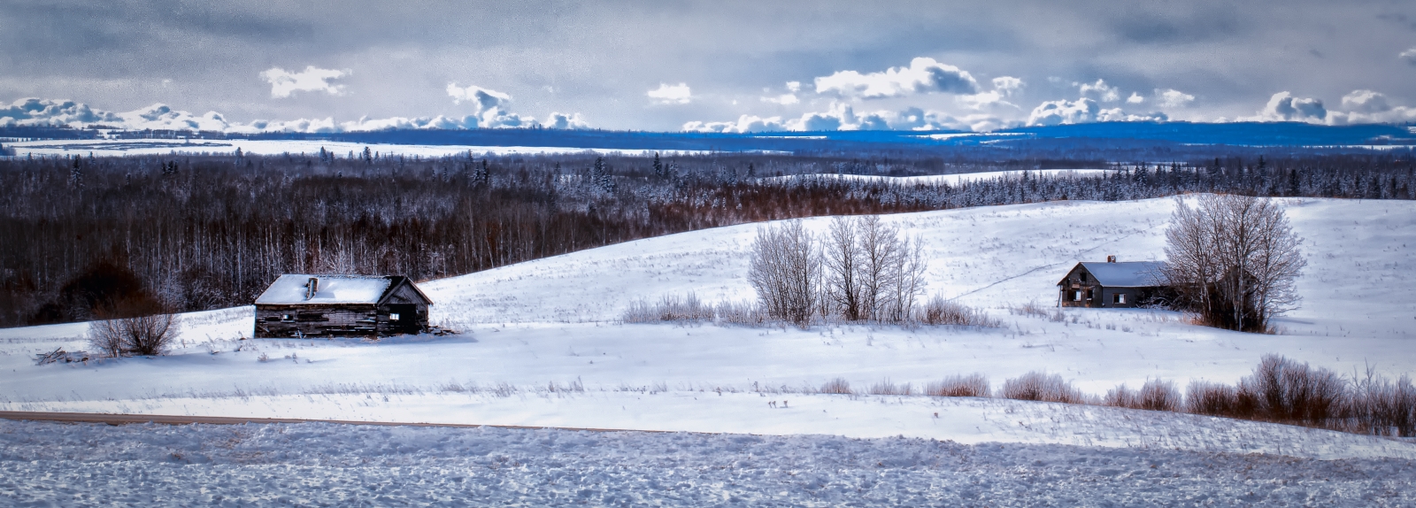 I was at the Sagitowa lookout working with my camera. After several shots, it began to snow. I packed up and began a drive toward Judah. In the early afternoon, the sun came out, somewhat harsh in terms of the contrast of light and shadows. Within the hamlet of Judah, I found treasure – this homestead.