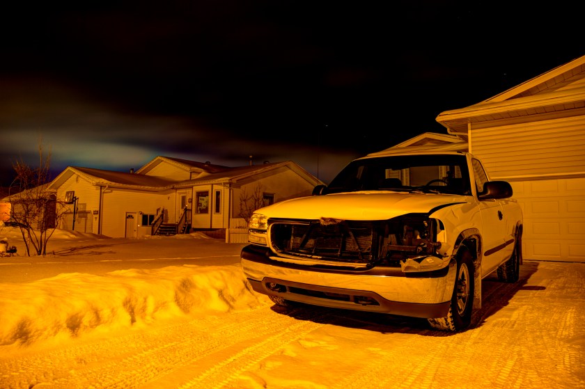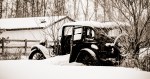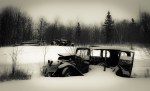 Photography has its learning curves, too. Good photography is about you learning subject and context and about you working to see them well through your camera’s lens. Working together is about you and the camera, it’s about you and the subject, and it’s about you and your environment. The vehicle that serves as subject to these photographs is a 1930’s rusting relic, a sedan with wooden spokes that could be a Chevrolet or a Ford or another make. I saw it last Wednesday in my return journey to Sunrise Beach, near Onoway, Alberta, a trip I was making with a friend to investigate the integrity of a second-hand 2000 GMC Yukon as a possible vehicle to replace my written-off 2000 GMC Sierra.