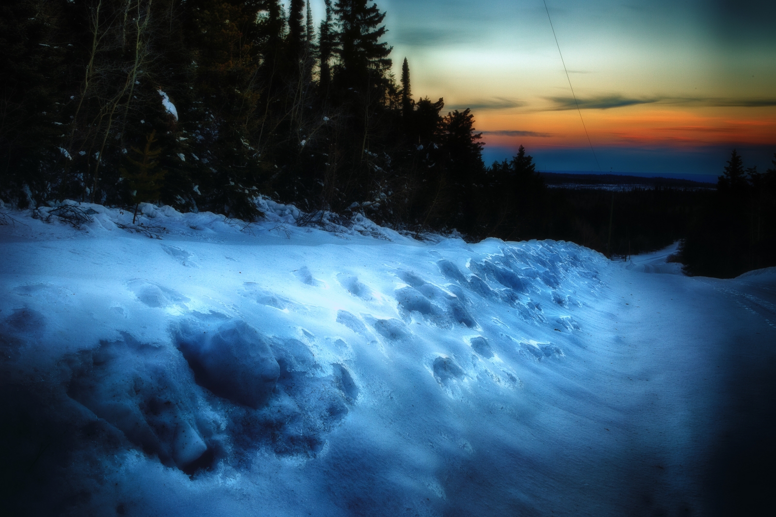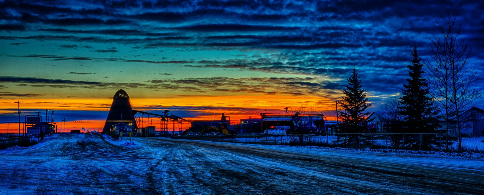 It’s March. Two weeks ago we were at -28C, here in High Level, Alberta. Yesterday and today Spring’s warmth melts snow. Returning to High Level from Edmonton on a Saturday afternoon, two weeks ago, a Tamron telephoto lens allowed for this high dynamic range (HDR) image capture of these three dormant, rusting relics – trucks not quite ready for salvage, more grist for custom renovation, nostalgic celebration or for parts. The clarity of the Tamron lens is excellent and at 400 metres distance from the vehicles distortion is limited. I’m liking the image yielded, its blues and textures – they remind of childhood play amongst cars next to the shop at my cousins’ farm.